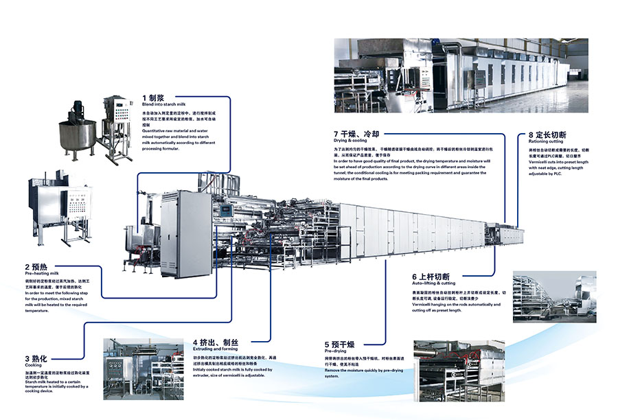非冷凍粉絲粉條生產(chǎn)線(xiàn)是我司最新研發(fā)環(huán)保節能型設備,實(shí)現了從前序調漿至產(chǎn)品產(chǎn)工業(yè)化連續生產(chǎn),中間無(wú)人工操作。設備占地面積少,性能穩定,產(chǎn)品工藝成熟;凡與食品接觸部分及設備的內外包裝均采用SUS304不銹鋼或無(wú)毒食品級材料制作,符合國際食品衛生標準。