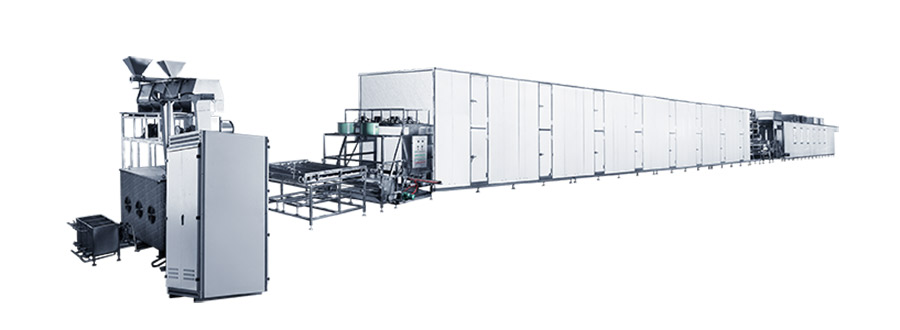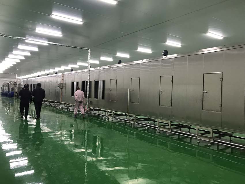 為了達到均勻的干燥效果, 干燥隧道依據干燥曲線(xiàn)自動(dòng)調控;將干燥后的米線(xiàn)冷卻到溫室進(jìn)行包裝,從而保證產(chǎn)品質(zhì)量,便于保存;