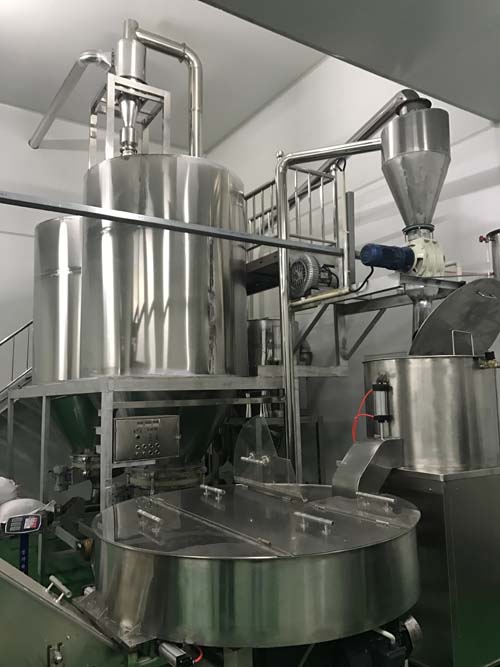 通過(guò)餳面機的不停攪拌使面團中的水分更均勻,并自動(dòng)提升到下一工序, 設備可實(shí)現供料系統的自動(dòng)控制;